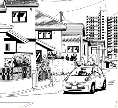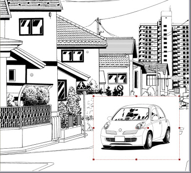 ↑上の背景素材に、↓下のクルマを縮小して貼り込んでみます。