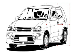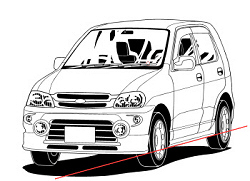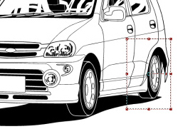 選択ツールで右下の角を、任意の位置に車体が来るまで