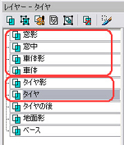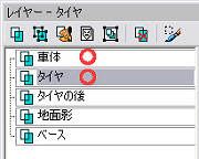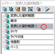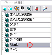 レイヤー画面の、タイヤレイヤーから作られた「変換した選択範囲」を、