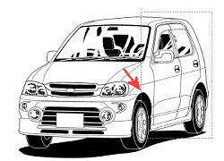 「車体」レイヤーを有効にして、選択ツールでクルマの側面を選択します。
