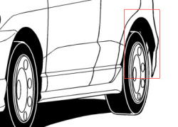 この時、前輪のフェンダー中央あたりを目安にすると歪みが目立たないと思います。