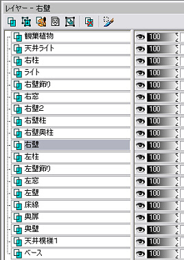| フォトショップのレイヤー表示 | ペイントショッププロのレイヤー表示 | |